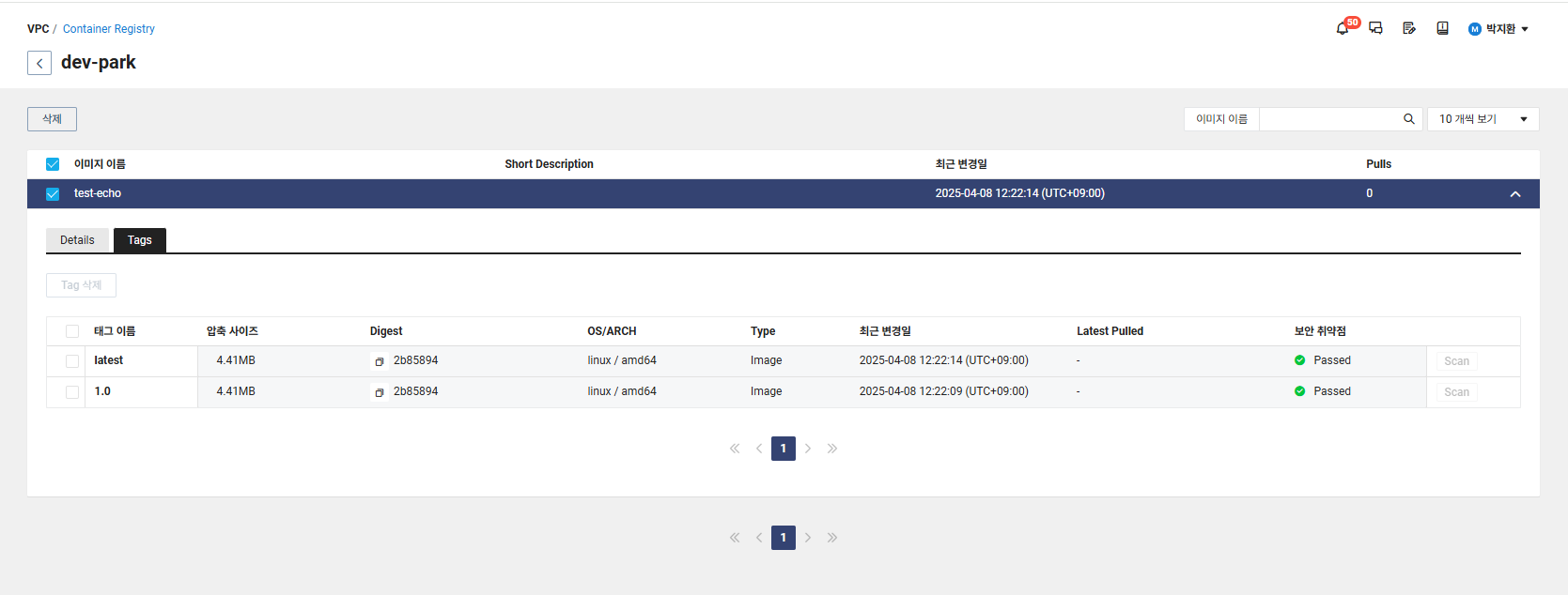 네이버 클라우드 콘솔에서 push 된 이미지를 확인한다.