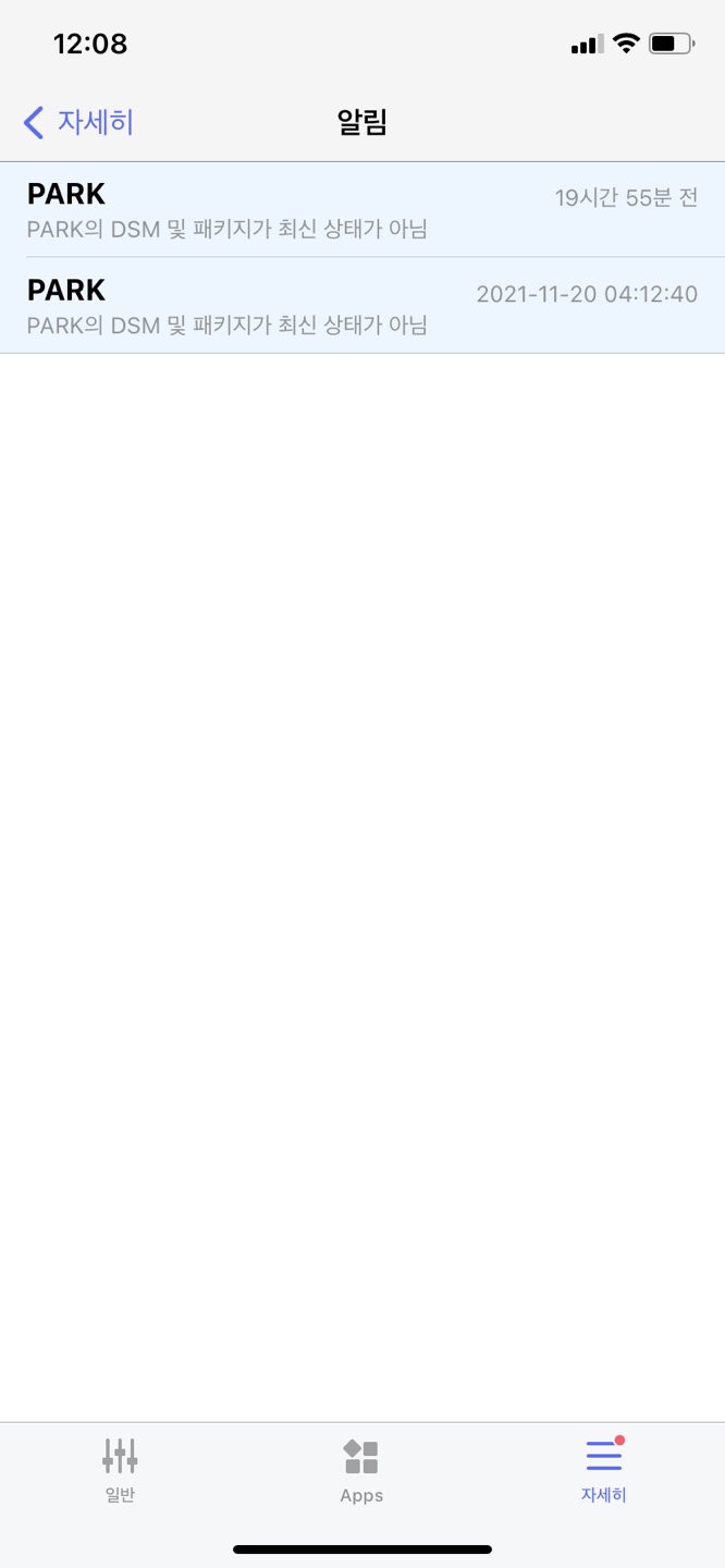해당 QR 코드를 이용하여 애플리케이션을 설치하면 [그림 4]와 같이 NAS의 이벤트(업데이트 정보, IP 차단)를 알람을 푸시한다.