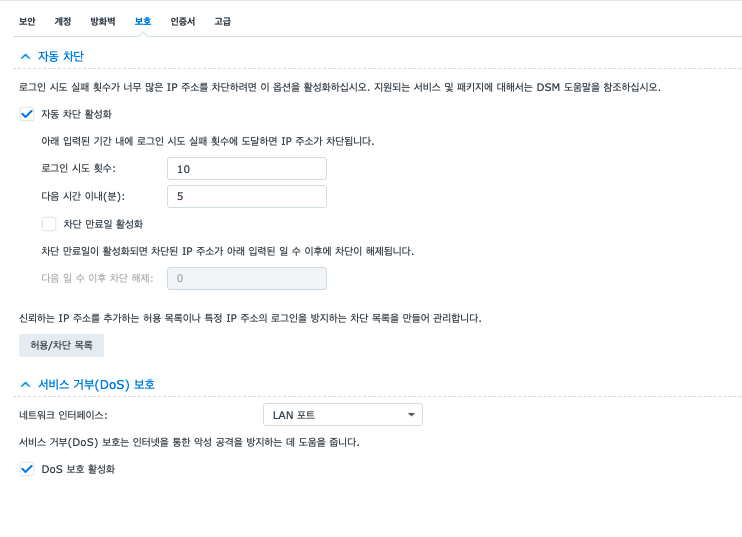 아래는 시놀로지사의 NAS 보안성 향상을 위한 설정에 대한 설명이다. 사용하는 주체(개인, 단체, 공공) 불문하고 반드시 설정하도록 하자.