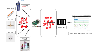 이를 해결하기 위해 Raspberry PI에서 각 센서의 데이터를 원하는 형태로 가공(필터적용, 데이터 연산) 하고 NAS로 데이터를 전송하여 서비스를 운영하면 NAS에서의 처리과정이 감소하여 적시적인 상황에 센서를 제어하고 모니터링 할 수 있게 한다.