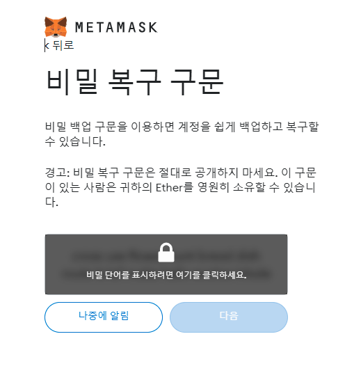 해당 비밀 복구 구문을 순서에 맞게 신뢰할 수 있는 장소에 2중, 3중으로 보관한다.