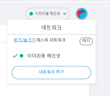 앞서 계정을 생성하였다면 현재 이더리움 메인넷으로 설정 되어있을 것이다.