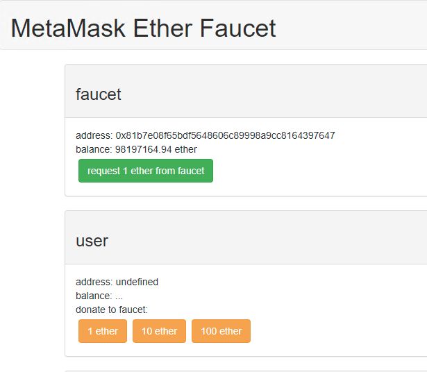 아래 포시트(수도꼭지)테스트 에서 Ether 얻기를 클릭한다.