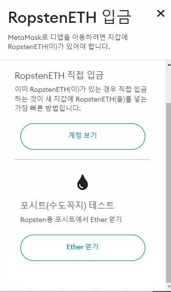 22.10.5 일자로 Ropsten 테스트넷 지갑이 중단되었습니다. Goerli 테스트넷을 이용하시길 바랍니다.