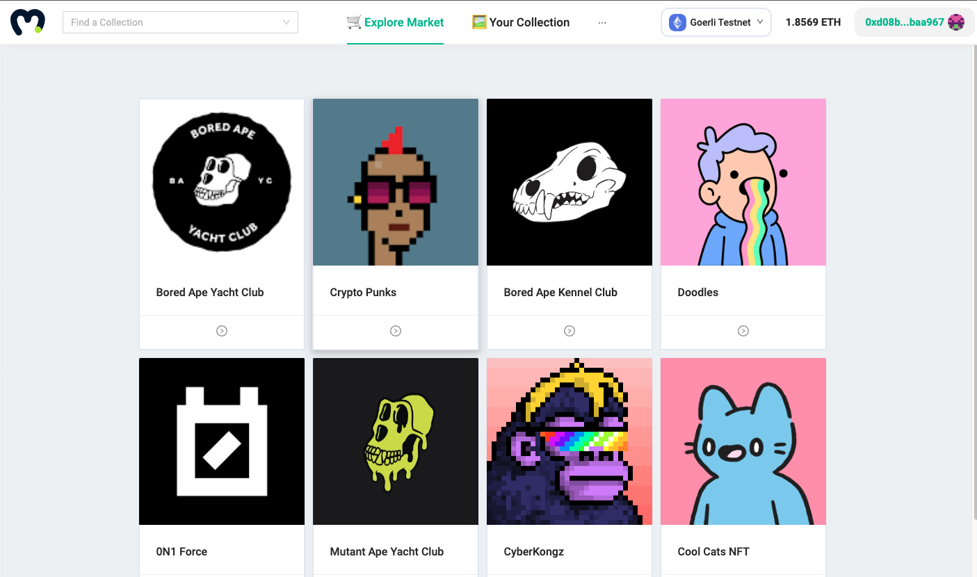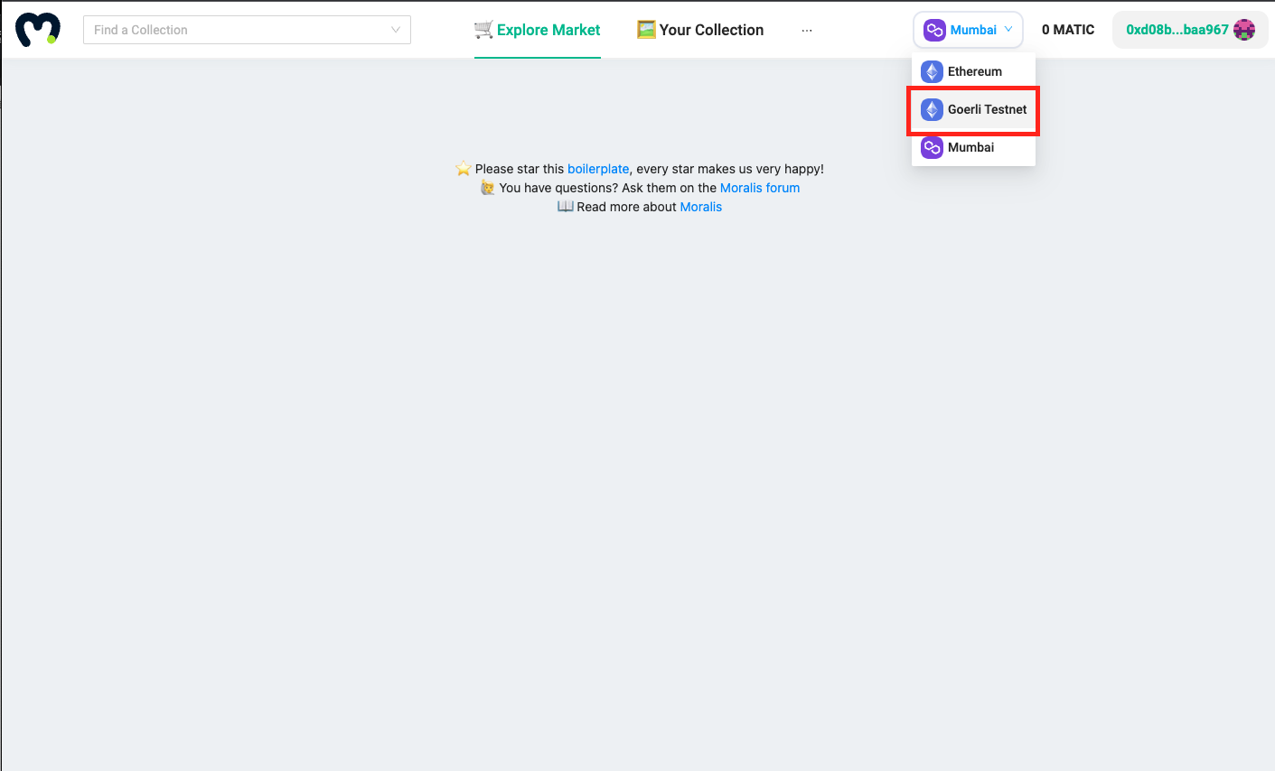 /src/helpers/collections.js 에서 Goerli Testnet의 key 값인 0x5로 변경한다.