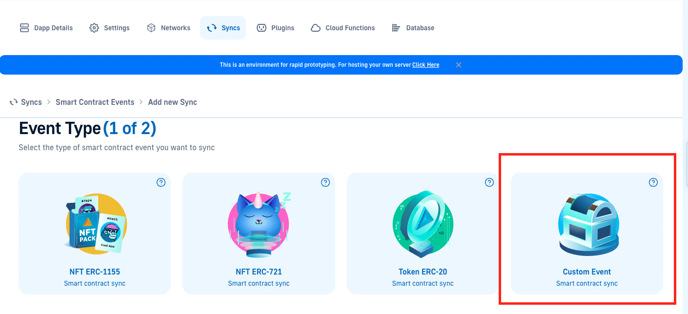 이때 Custom Event를 입력한다. (NFT ERC-721를 선택하면 안된다.)