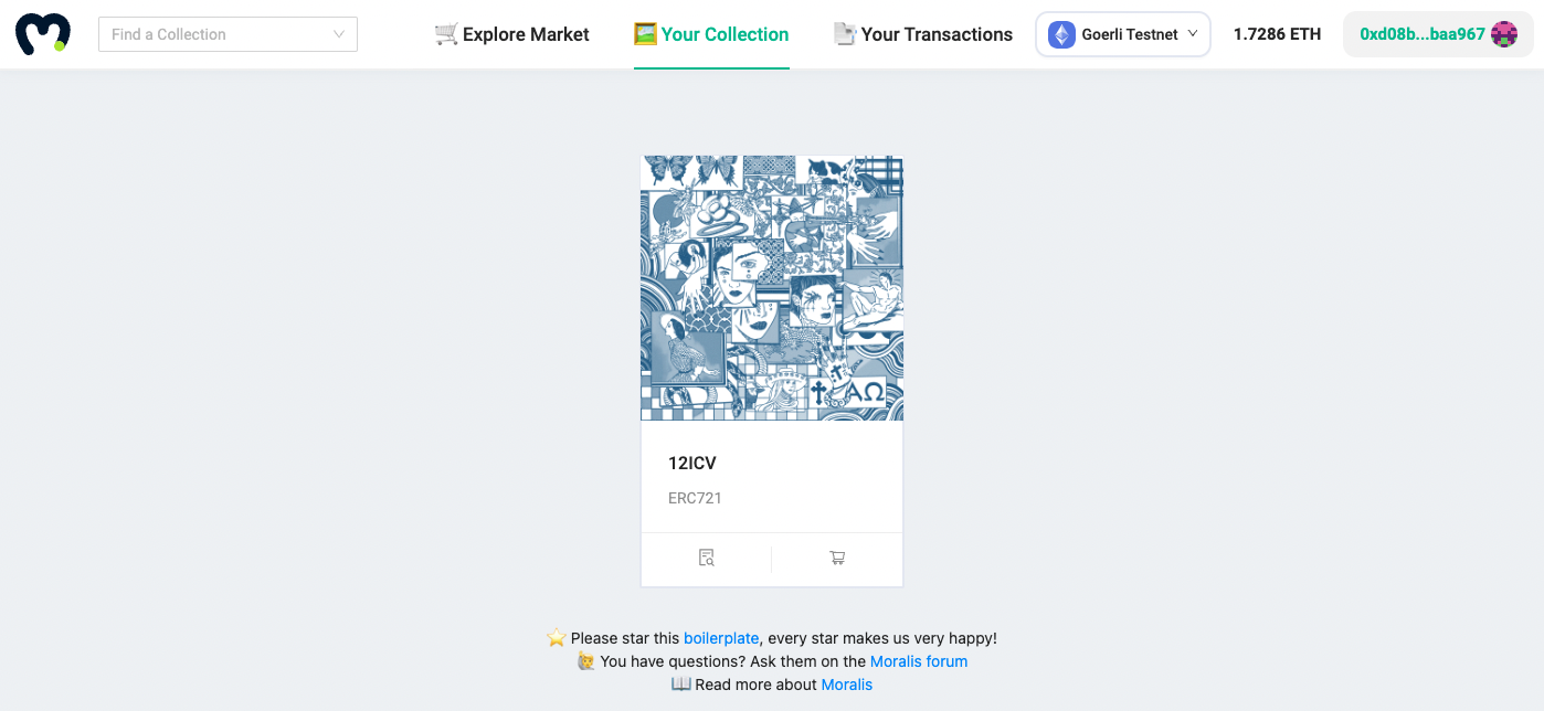 Authentication 으로 자신의 지갑과 연결하고 Your Collection 탭으로 이동하면 Minting 한 NFT를 확인할 수 있다.