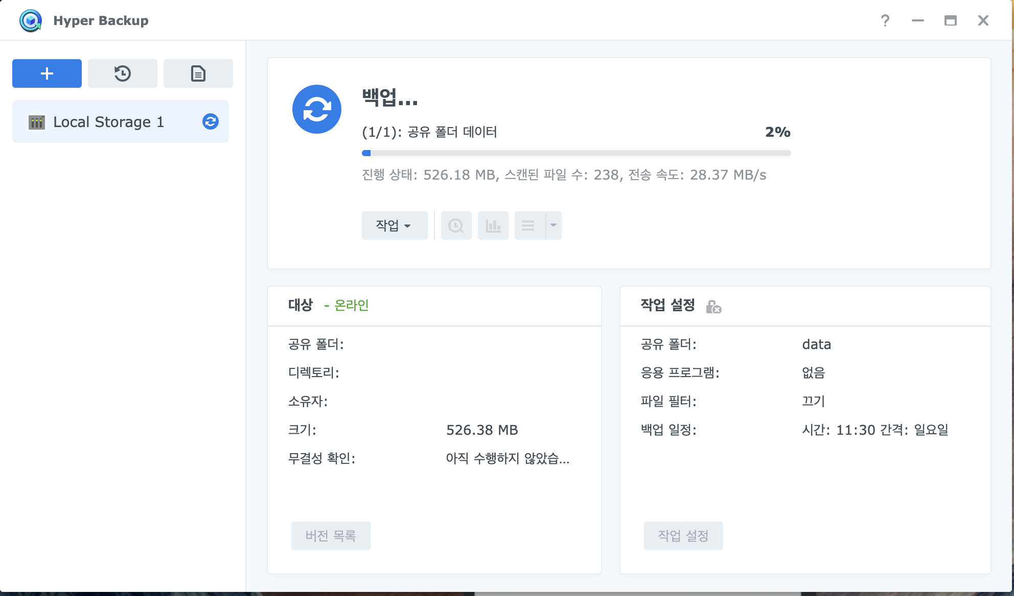대시 보드를 통해 현재 백업 진행상태를 확인할 수 있다.