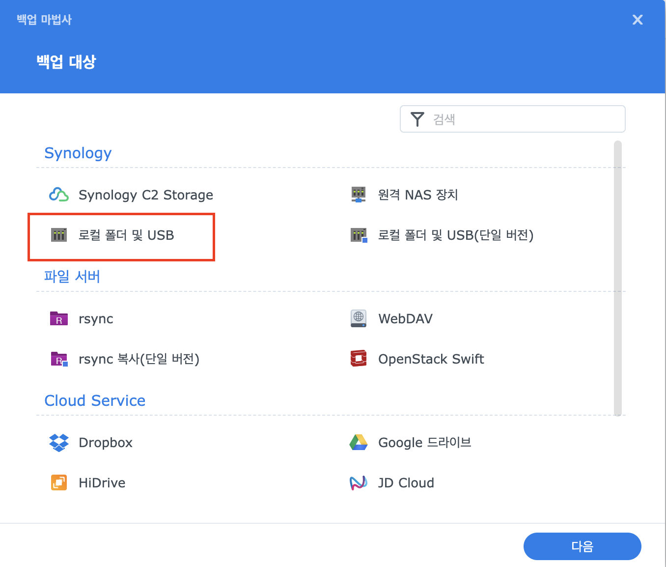 패키지 센터에서 Hyper Backup을 검색하여 해당 플러그인을 설치한다.