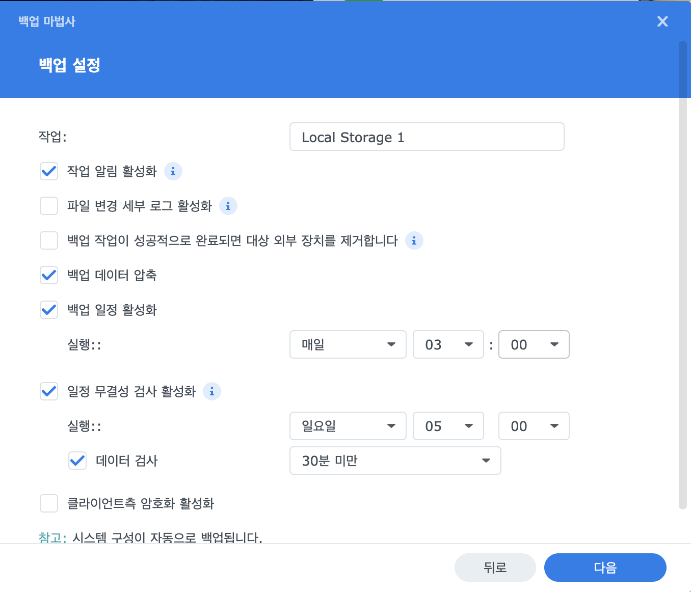 완료를 눌러 진행하여 지금 백업을 수행한다.