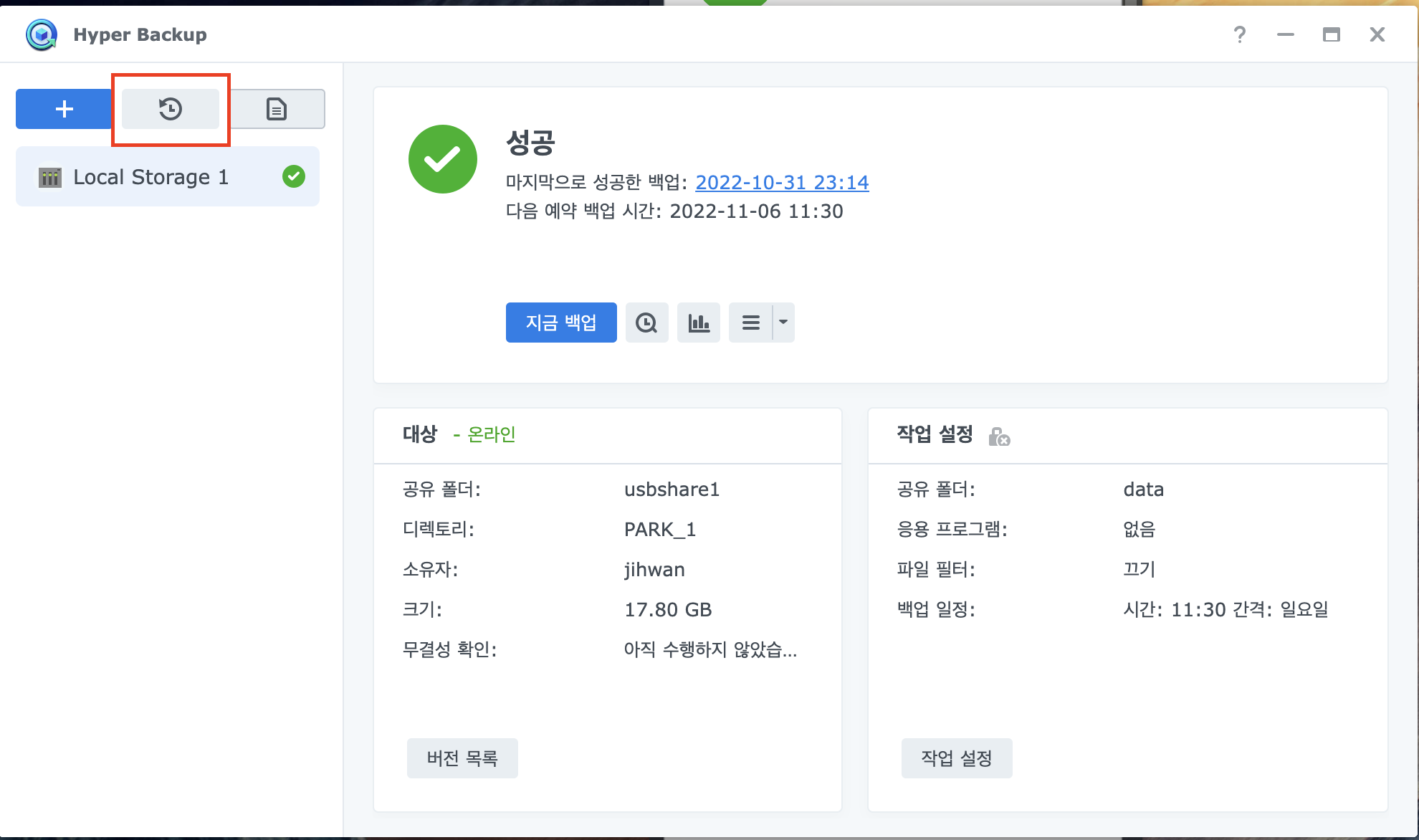 대시 보드를 통해 현재 백업 진행상태를 확인할 수 있다.