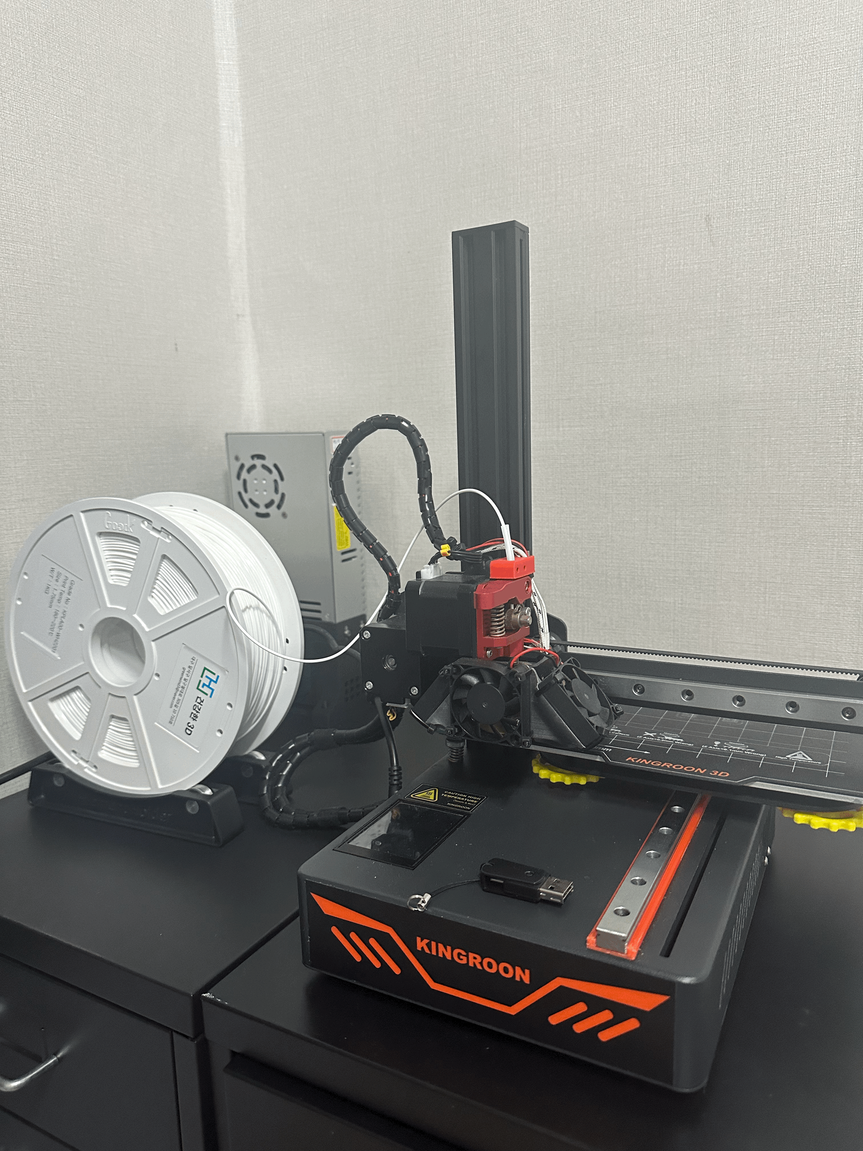 3D 프린터를 구매하고 작업실에 적절한 공간에 배치했다. X,Y 축의 간섭을 받지 않는 적절한 공간이 필요했고 인쇄 과정에서 생기는 소음 및 연기를 피할 수 있도록 휴식 및 침실과 분리된 환경에 배치하였다.