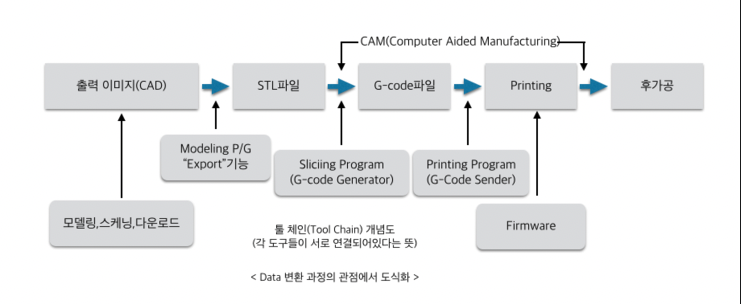 아래 사진은 모델링한 파일이 프린팅되는 과정을 도식화한 자료이다.