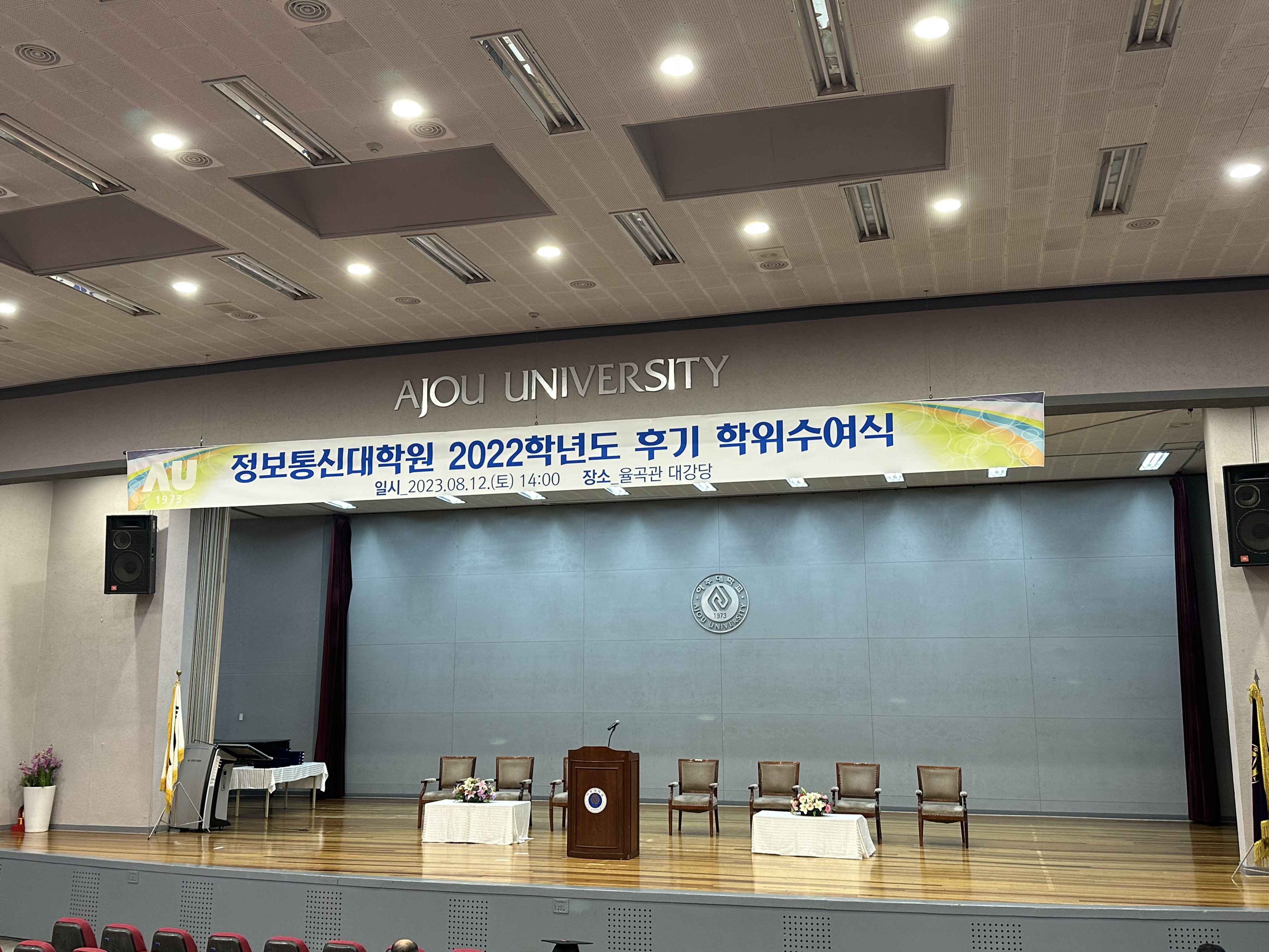 2023년 8월 12일. 석사과정 2년간의 결실을 맺고 졸업식을 하는 날이다. 2023년 3월부터 시작하여 회사 적응으로 인해 1학기 휴학과정을 거치고 2년 5개월정도의 시간이 흐르고 졸업을 했다. 약 2년간의 학업 과정동안 군인이었고 취준생이었고 직장인이었다. 학업과 직장을 병행하는 과정은 쉽지 않았던 것 같다. 논문 결과는 아쉬움이 많았지만 그래도 2년의 학업의 과정동안 최선을 다했다. 오늘 졸업식을 통해 2년간의 노력의 결실을 맺는다.