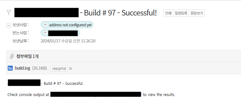주요 옵션은 대부분 전역(System)에서 설정한 내용과 같다. 전역 내용과 다르게 각 Item으로 구분하여 빌드 결과를 발송하고 싶다면 설정한다. 그렇지 않고 전역에서 설정한 내용을 그대로 적용하고 싶다면 내용을 유지한다.