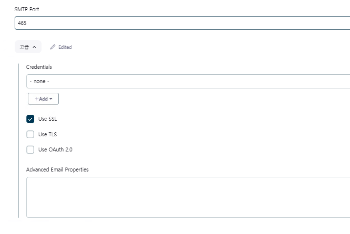 - SMTP Port: 메일 서버의 SMTP 포트 넘버를 기입한다.